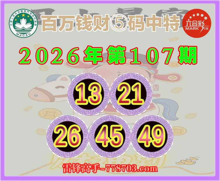 107期: 🐓『百万钱财』 🐓⑤码中特🐓【13.21.26.45.49】开:4921.25分公开验证