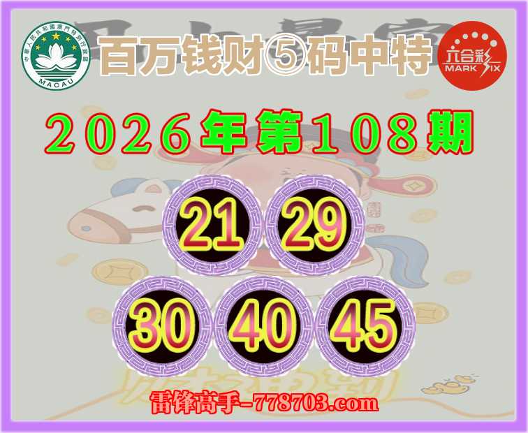 108期: 🐓『百万钱财』 🐓⑤码中特🐓【21.29.30.40.45】开:45