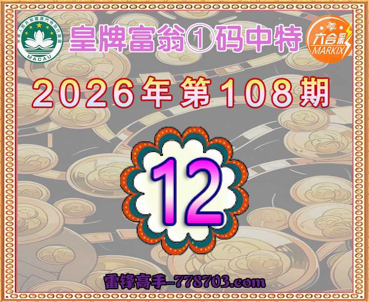 108期: 『皇牌富翁』 ①码中特【12】开:45