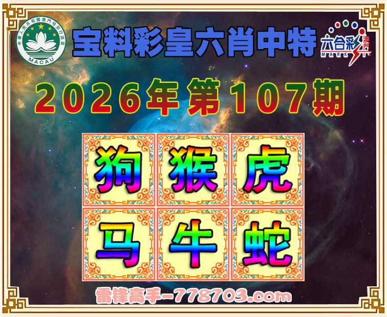 108期:【宝料彩皇】 六肖中特开:狗45