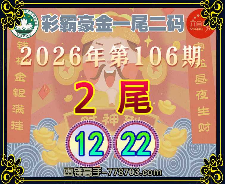 106期: 『彩霸豪金』 一尾二码2尾主:12.22】开:22