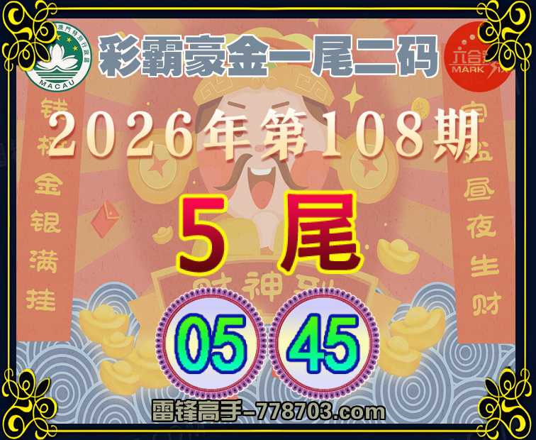 108期: 『彩霸豪金』 一尾二码5尾主:05.45】开:45