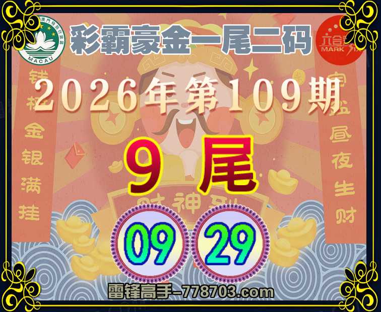 109期: 『彩霸豪金』 一尾二码【9尾主:09.29】开:00准