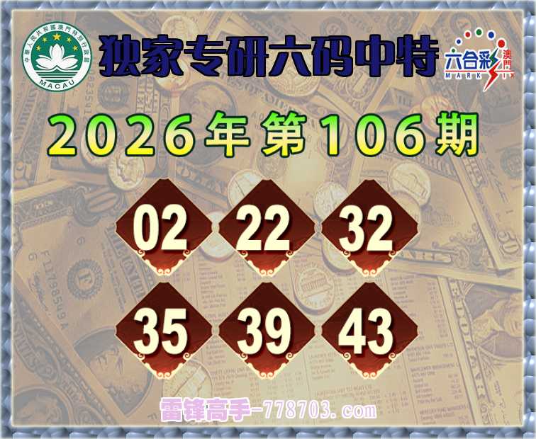 106期: 《独家专研》 六码中特【02.22.32.35.39.43】开:22