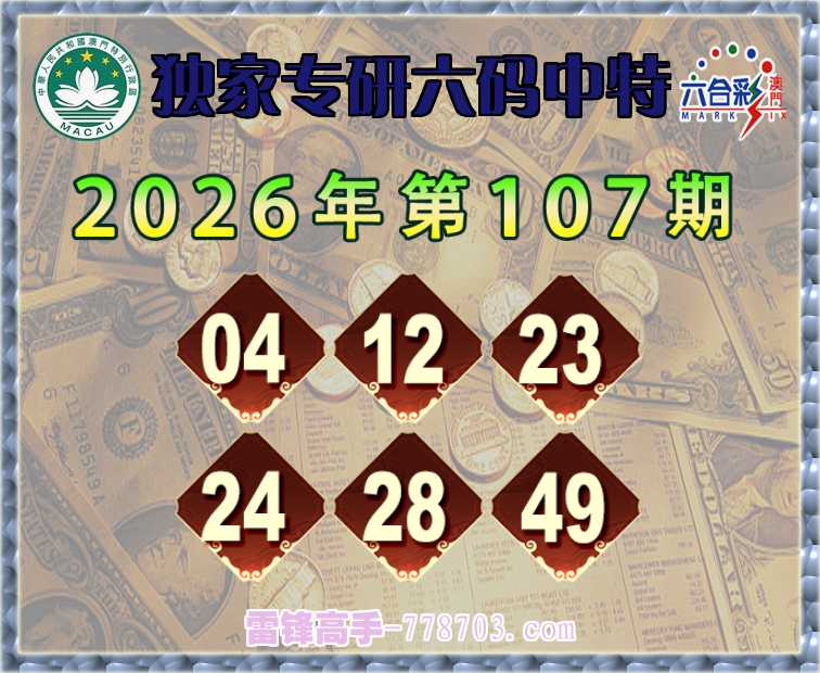 107期: 《独家专研》 六码中特【04.12.23.24.28.49】开:49