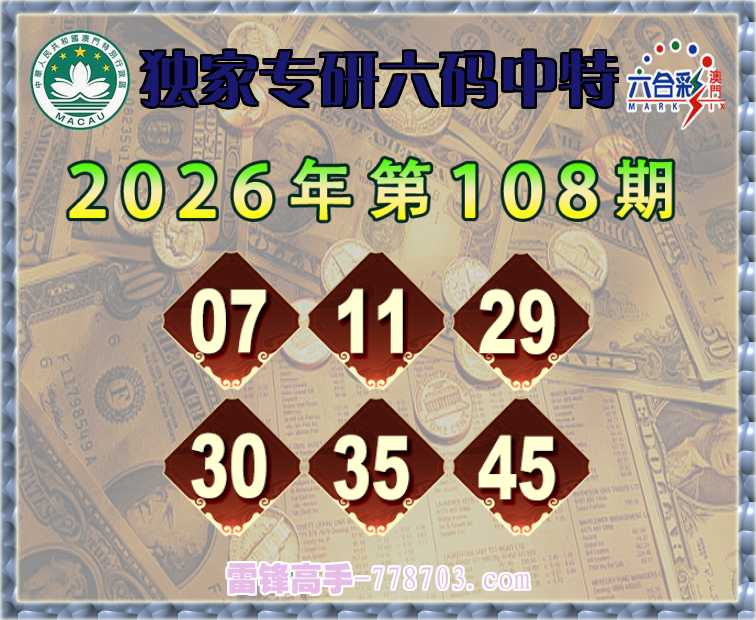 108期: 《独家专研》 六码中特【07.11.29.30.35.45】开:45