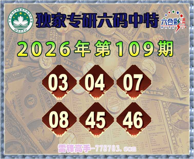 109期: 《独家专研》 六码中特【03.04.07.08.45.46】开:00准